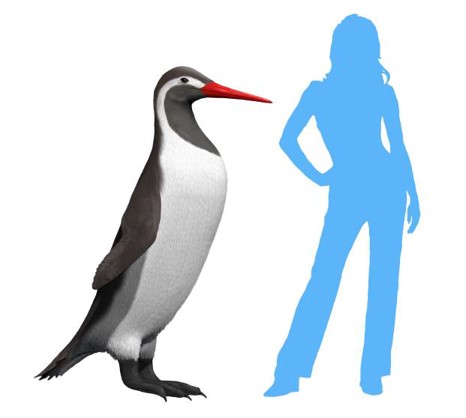 Many ancient penguins were very large! Several extinct species are known to have reached 1.5 meters (5 feet) tall or even larger, with estimated weights up to 80-100kg (170-220lbs), quite a bit bigger than living emperor penguins. Their super-size might have allowed them to go after larger prey or to make deeper dives, but whatever they were doing, it was clearly successful: giant penguin fossils are found all over the Southern Hemisphere from the Paleocene to the Oligocene.