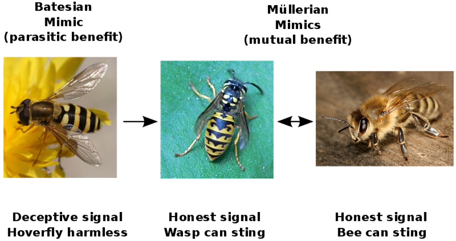 Mimicry typically involves at least one mimic species, at least one model (the species the mimic is mimicking), and at least one dupe (the species the mimic has evolved to fool). Not all mimicry is visual; mimics can resemble their models in terms of appearance, sound, smell, or other characteristics. And not all mimicry is defensive; mimicry can be useful for evading predators, fooling prey, or even convincing other species to do ones’ bidding.