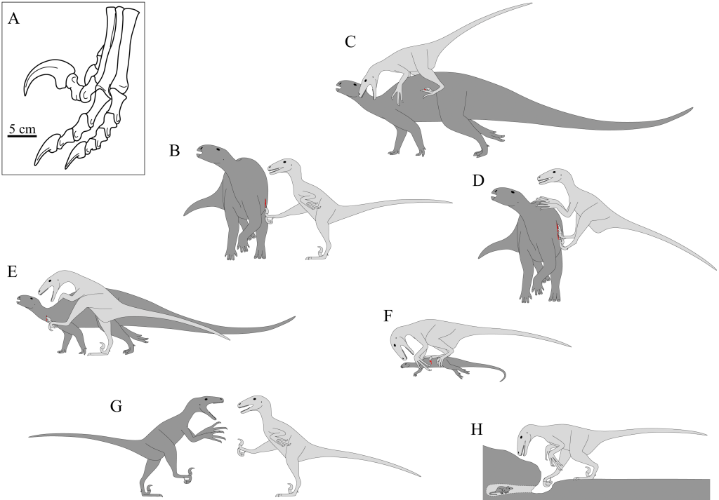 Recent research favors the interpretation shown in F, where the animals would use these claws to immobilize prey while they eat them, similar to how modern birds of prey often use their talons.