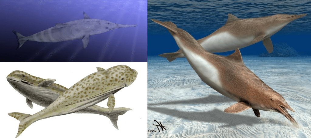 Top left: Squalodon, the “shark-toothed” whales. Image by Nobu Tamura, CC BY 3.0