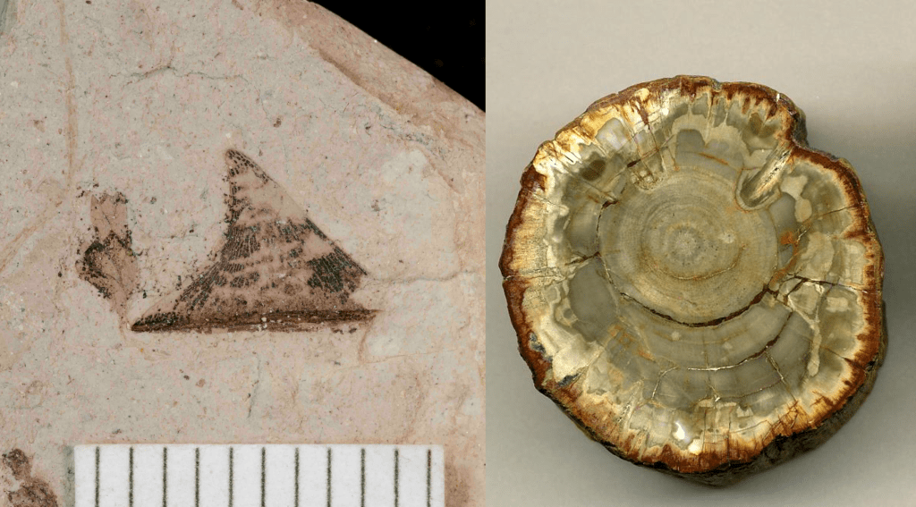 Right: Petrified wood, showing thick bark. Image by James St. John, CC BY 2.0