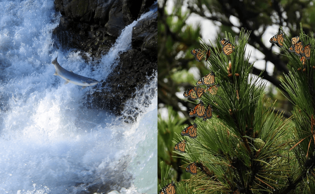 Right: Some animals make only a partial migration! Monarch butterflies migrate thousands of kilometers, but it takes multiple generations to do it. Image by C. Formanski.