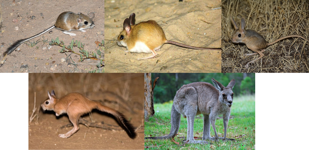 Top middle: Hopping mouse. Image by Boyd Essex, CC BY 4.0