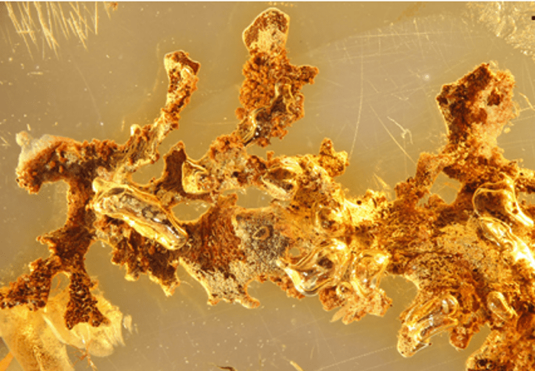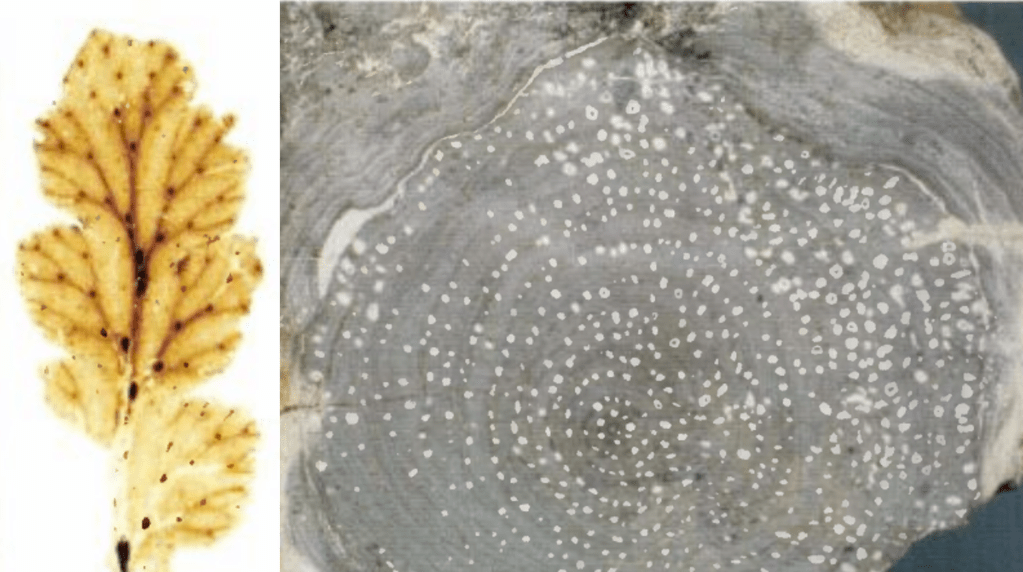 Right: Ectomycorrhizal arbuscles in the root of Eocene Metasequoia.