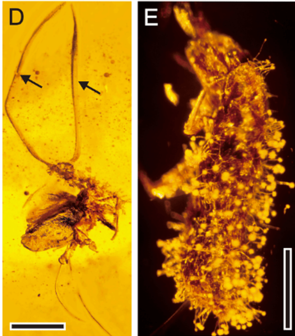 This sort of dramatic fungal parasitism is documented from the distant past by some truly incredible fossils.