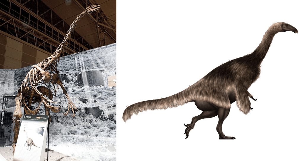 Right: Artist’s reconstruction of Nothronychus mckinleyi. Image by PaleoNeolitic, CC BY 4.0