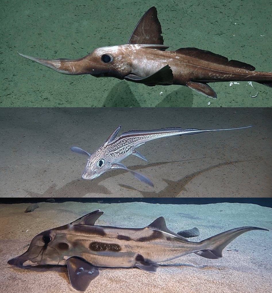Top: Long-nosed chimaera (Rhinochimaeridae). Image by MARUM, CC BY 4.0