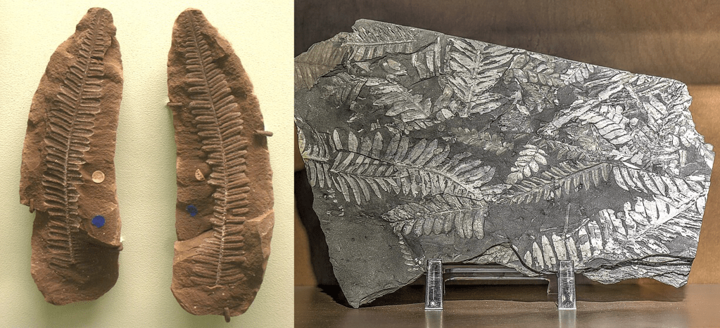 Right: Fossil from the Llewellyn Formation, Pennsylvania. Image by Dsdugan.