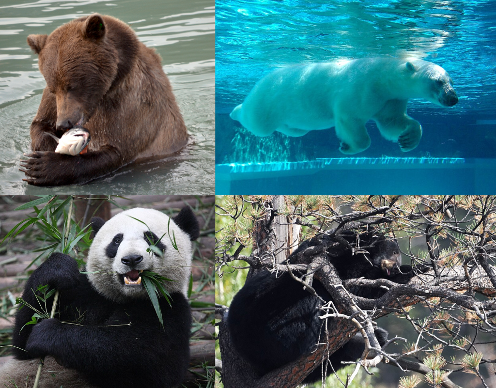 Bears are extremely versatile. They’re excellent climbers and capable swimmers, they can use their large claws to burrow into the ground, and they’re pretty fast runners. On top of that, bears have very flexible diets. Most species are omnivorous with a preference for plants, and their diets tend to change from season to season and region to region. And when times are tough, most bears can hibernate and wait for more favorable conditions. All of this behavioral flexibility allows bears to survive in a wide range of habitats and sustain their very large bodies.