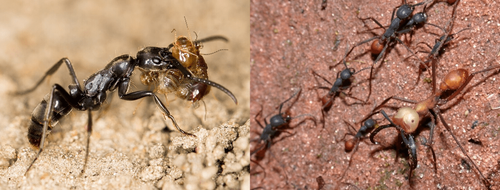 Right: Eciton burchellii, army ants that hunt other ants. Image by Alex Wild\