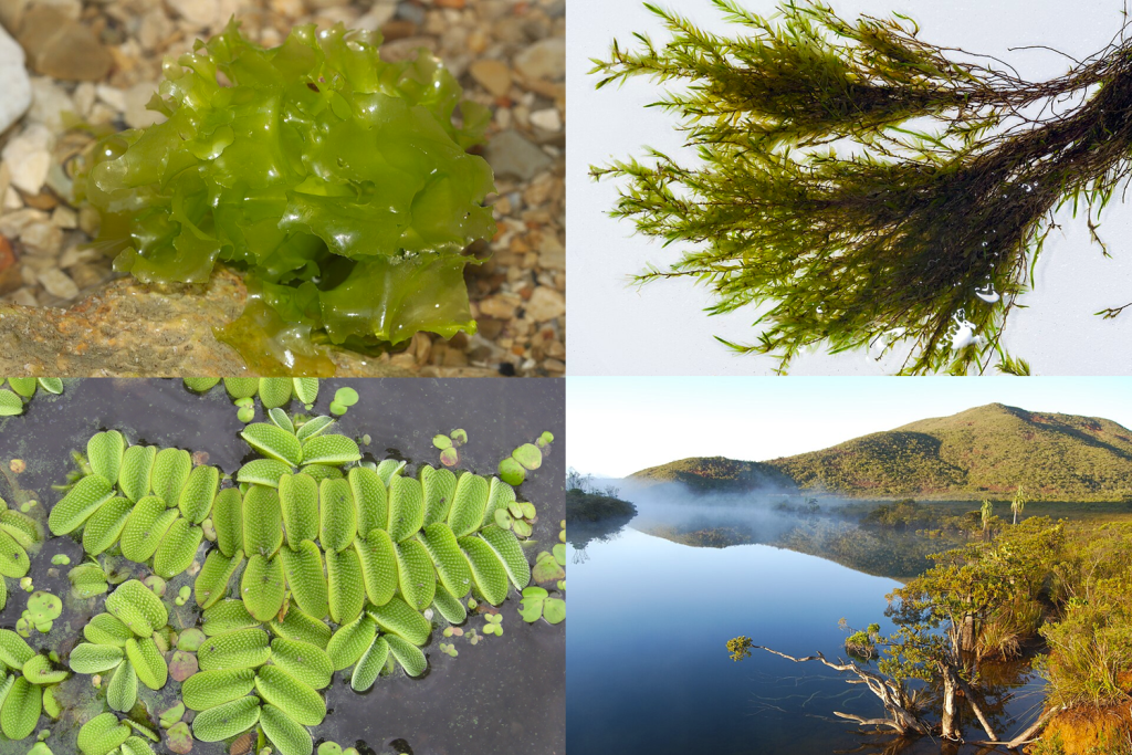 Top left: Sea lettuce (Ulva lactuca), a type of green algae. Image by Holger Krisp, CC BY 3.0