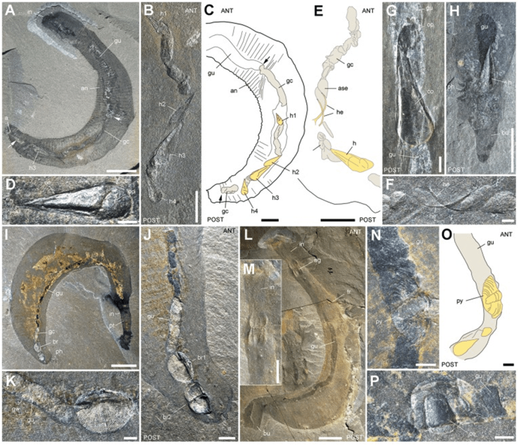 Digestive organs rarely preserve in the fossil record, but there are exceptions, sometimes even preserving gut contents that give us clues to ancient diets. The chemistry, shape, and contents of gut remains, fossilized pellets, and coprolites (fossilized poop) can all provide information about the behavior of ancient animals’ digestive tracts.