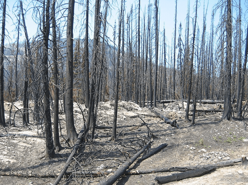 Many plants grow rapidly in burned habitats, taking advantage of the abundant sunlight and the lack of competition. Some plants even rely on fire to trigger reproduction, including fire lilies whose seeds germinate in the presence of smoke and pine cones which open when burned by fire.